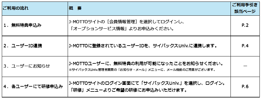 J-MOTTOと「サイバックスUniv.」を連携することで、ご利用可能となります。