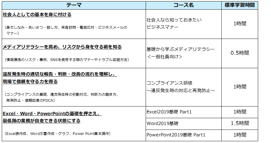 全て日々の業務でご活用いただけるコースです。